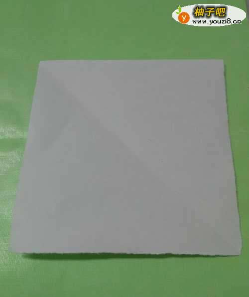 先将一张正方形纸的两个对面的角对折一下,再启用,中间折出对角线。