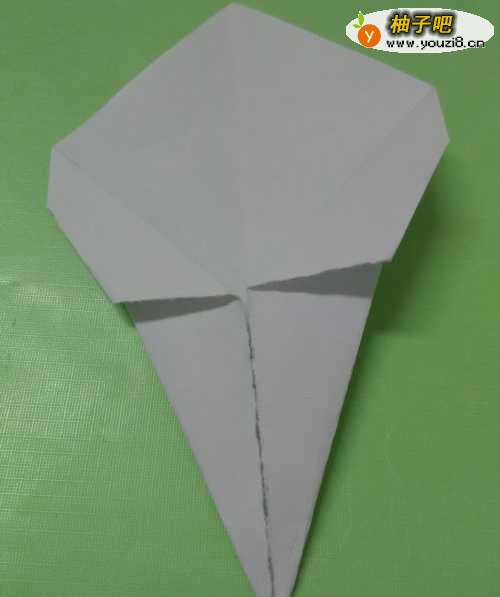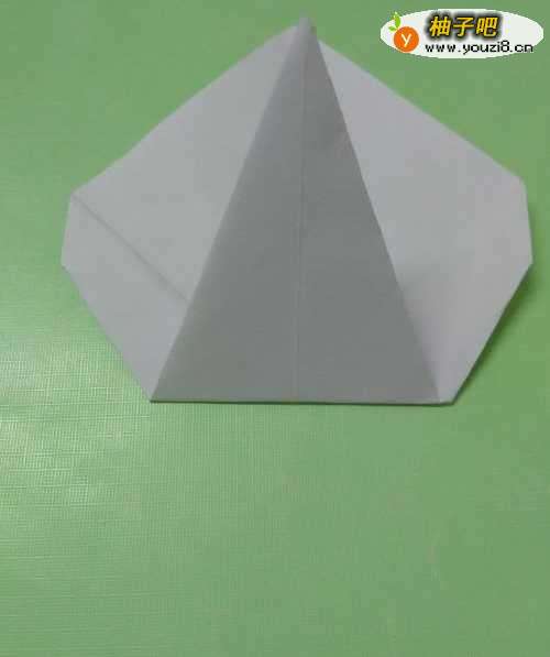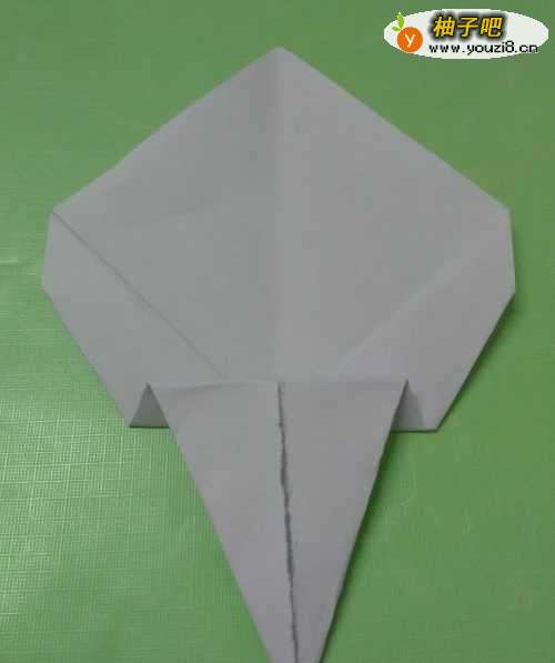 5将纸下半部分的三角形向上折,按平。