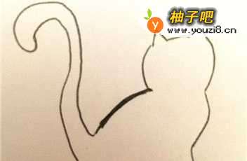 2第二步画出圆形斑纹猫的全身的形状,如图。