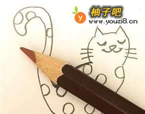 本篇介绍:怎样画一只圆形斑纹猫的简笔画?