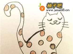 6第六眠罪步将圆形斑纹猫的圆形斑纹涂上颜色即可。