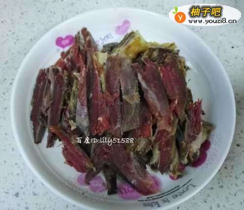 先把腊肉放到锅里煮40分钟之后,拿出来晾凉。煮过腊肉的水不要了,晾凉之后,切片备用。