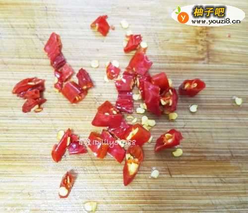 3干辣椒洗净,切成小段备用。