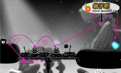 也许我们永远也看不到这种以谜团和可爱的主人公为一体的游戏统领的潮流直到终止的那一天。但毋庸置疑的是,Chillingo公司一直在推促着这一潮流的进程。尽管由Mokus制作的黑暗旅行也许没有像其他的游戏一样配置传统的卡通及色彩鲜艳的场景,却与它愁眉不展的主人公(就是那个大眼睛的家伙)般配,而作为玩家的你则掌控着他的世界。[黑暗旅行(Contre Jour)攻略第三章]今日小编为大家带来了《黑暗旅行》第三章的详细图文攻略,相比前两章,本章的难度和技巧可谓是做的更为大而精。当然对于没有体验过前两章的童鞋来说会有比较大的难度,没关系,万事开头难,小编为大家精心准备了图片流程与步骤解析,如果依然困惑,还有为玩家们准备好的视频哦,让玩家们不会在一个关卡上耽误更多时间,当关卡通过后,一丝成就感涌上心头别有一番滋味,下面就让我们一起来欣赏下吧。