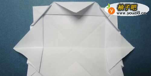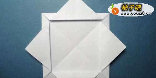 3然后,把折纸四边的三角纸边,各向上对折一次,如下图所示。