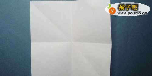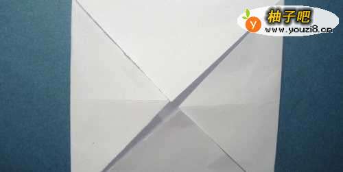 2接着,把正方形折纸四边的三角纸边向中间对折,并压平整,如下图所示。