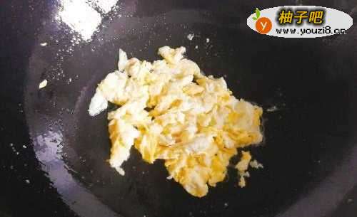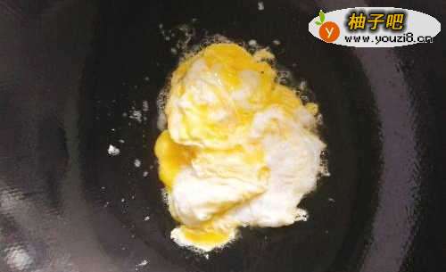 4快速翻炒几下鸡蛋,等鸡蛋6、7分熟成型后,将鸡蛋盛出备用。