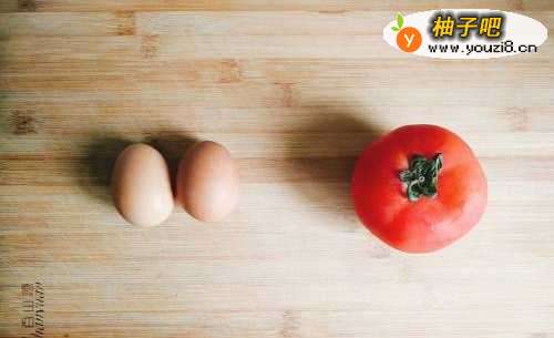 首先,我们要准备好本次烹饪的重要食材:西红柿一个、鸡蛋两颗。