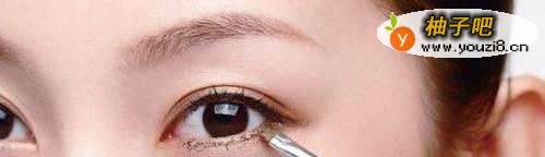 下眼影的涂抹方向:褐色眼影沿着眼尾至眼头的方向涂抹;而珠光色眼影则相反。