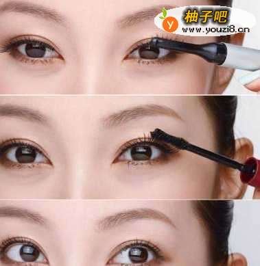 2、然后沿着睫毛根部向上,在上睫毛处开始做“Z”字型的盯王涂刷。