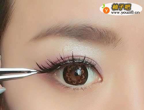 5睫毛 东方人的睫毛不如西方人的浓密和卷曲,所以要藉用睫毛夹,将睫毛分两段或三段夹翘,然后再上睫毛膏。上睫毛膏时要将毛刷放进容器底部略转一下(不可上下大幅度的抽动,以免睫毛膏变干),之后将顶端多余的睫毛膏,沾回容器内,然后眼睛往下看,将睫毛刷拿水平,以Z字形由上往下,由下往上,将睫毛膏由根部往尾部平均包覆涂上,如要更浓密,可等略干后再上一次;而下睫毛的上法,是将睫毛膏拿垂直,左右移动,将睫毛膏涂于下睫毛上,如有结块,用睫毛梳梳开即可。