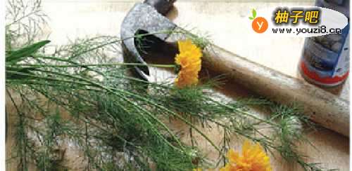 只要三样东西,那个花不知道叫啥,就找一个回香跟野菊吧!