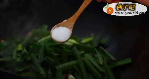 8将已经切好的蒜苗放在锅中,进行翻炒。
