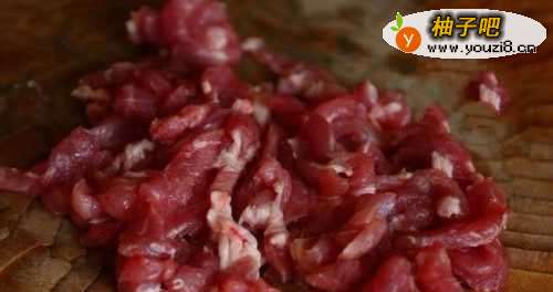 2将准备好的瘦肉切成一个个丝状,留以备用。
