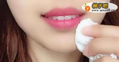 5用纸巾擦掉唇线外面的口红。如果你经常涂,比较熟练了,通常是不会晕染出来的。