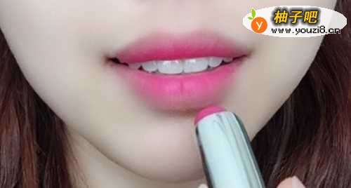 3微微张开嘴巴,用口红涂抹,记得不要涂太厚,除非你画的浓妆,涂的时候离开嘴唇边缘一点距离,因为涂到边不自然,也浪费。