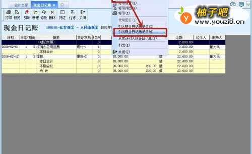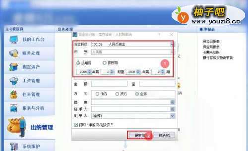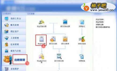 2在功可以选项菜单,点击选择【出纳管理】-【日记账】;