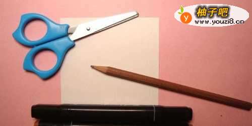 准备好,制作可爱的松鼠图形剪纸手工的材料和工具,有白纸、正方形卡纸、马克笔、铅笔,剪刀,如下图所示。