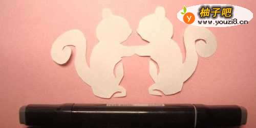 3然后,把白纸上可爱的松鼠图形的轮廓图形,用剪刀慢慢的剪出来,摆放在桌子上,如下图所示。
