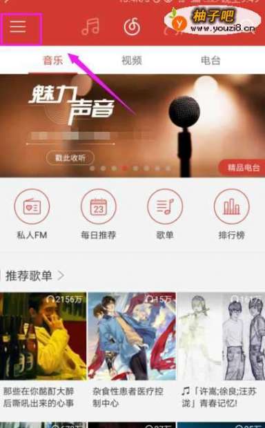 2来到了这款首页,我们点击三横线,如图。