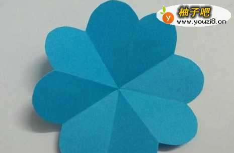 7启用折纸,一朵八瓣花就剪好了。