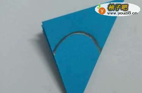 5将折纸摆放成下图的位置后画上圆弧状。