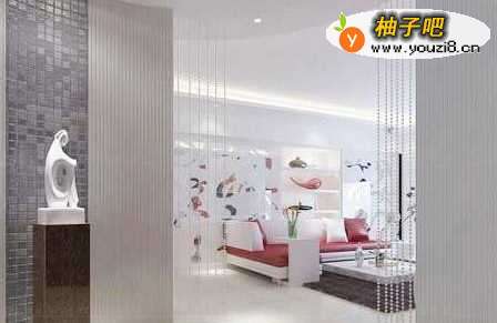 1用水晶珠帘做软隔断一进门就发现了这一窜漂亮的珠珠,使人不得不想起一帘幽梦里的情节。透明的水晶珠帘那简直就像一个魔幻的空间一样,拨开这一片幽梦就就会发现里面别有洞天,展现的是一个摩登现代空间。
