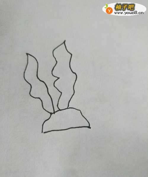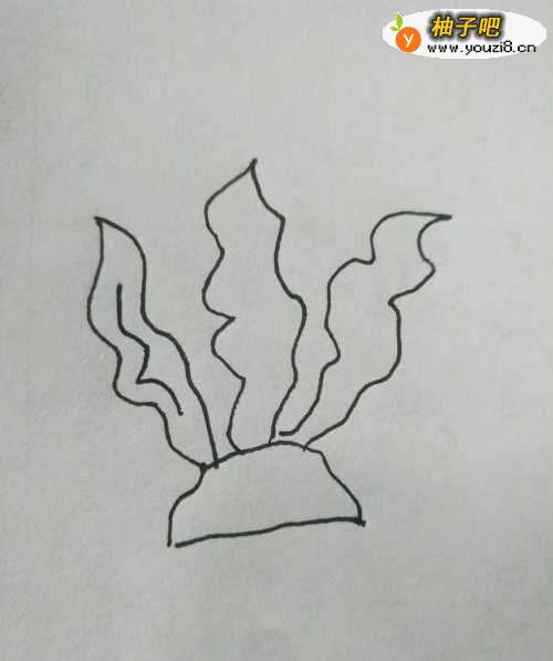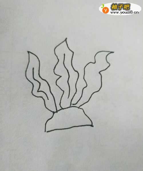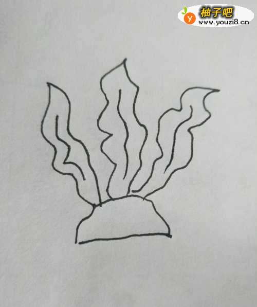 6第六步,最后,用相同的方式把右边水草也画上一条弧线。
