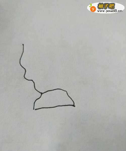第一步,我们先画出一个半圆形,圆弧部分向上。