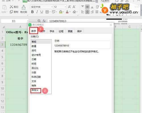 1、首先,WPS Office Excel数据表格;2、选择单元格【B3】,单击鼠标右键,选择【使用对象格式】;3、在“单元格格式”窗口,选择数字分类类型【自定义】;4、在“自定义”类型对话框中,输入数字格式【000-0000-0000】,然后点击【确认】;