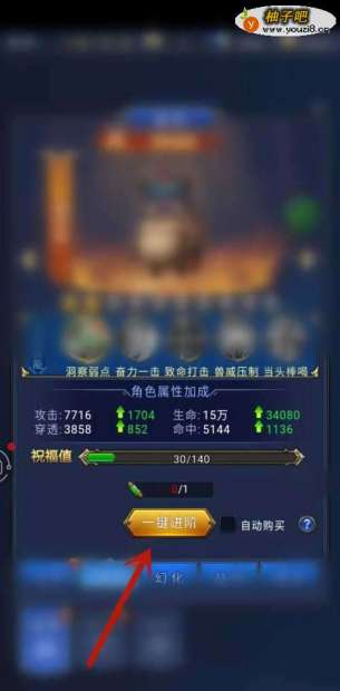 3然后点击一键进阶按钮。