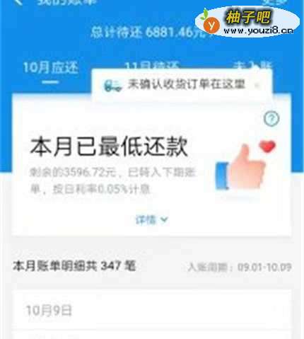 4点击进入我的账单,能看到总计要还金额,本月已还,下月待还,查询账单明细。