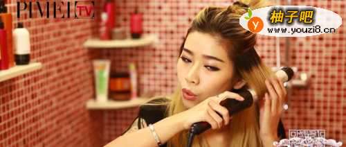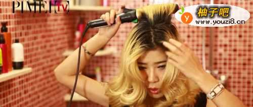 7然后再卷后面剩的头发。这里的头发可能比较厚,所以加热的时候要稍微多停留一点点。