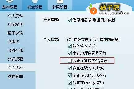5将状态下的“我正在播放的QQ音乐”前面的勾去掉,就能啦