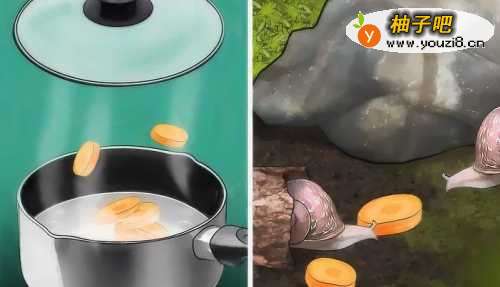3每天给蜗牛喂洁净的食物。大多数的蜗牛都不挑食,它们几乎喜欢所有的蔬菜和水果。在你喂蜗牛之前用水把食物洗干净,然后将蔬菜切成块或者片儿投喂。有些食物,比如土豆和胡萝卜,都需要烫几分钟稍软一点再喂。还有就是煮过的食物在喂蜗牛前一定要彻底晾凉。