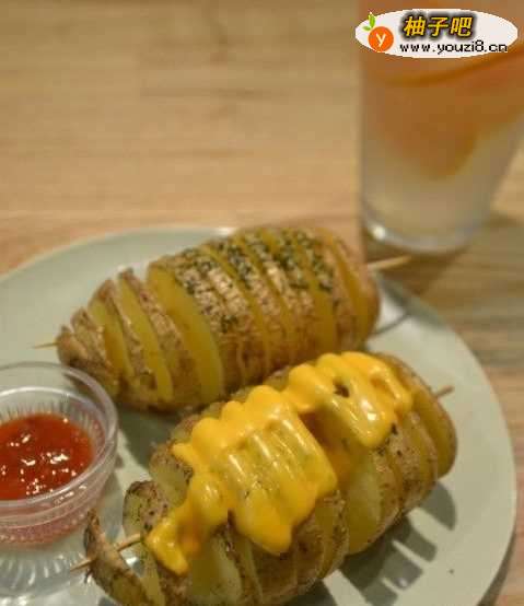 6刷上奶酪,再烤一分钟后,旋风土豆就完成啦!