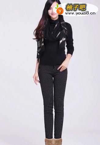 7裤装上大多运用纵向条纹,原理或许来自于竖条纹相对于横条纹更显瘦,但其实如果是这样细密的竖条纹,则对腿型的要求十分苛刻,若没有模特这样又细又长又直的优质双腿,女生们还是看看就好。