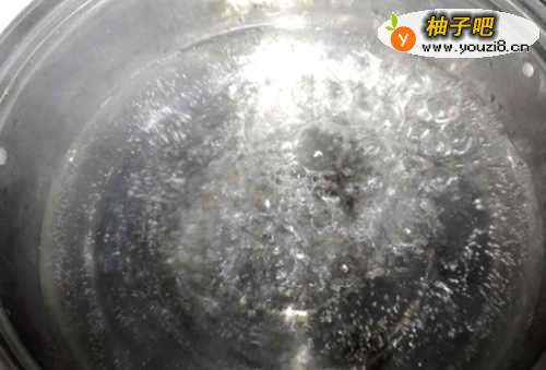 3水开之后将,准备好的凤爪导入锅中,并导入适量的料酒。
