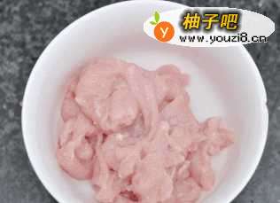 4烧锅落油,将肉片放入拉油至仅熟,放在盘子里待用