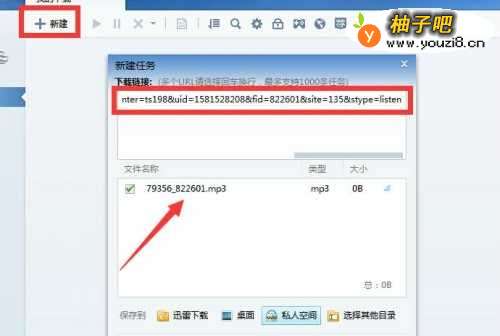 6接下来开启支持P2P下载的程序,比如迅雷程序,点击“新建任务”按钮,并在弹出的窗口中粘贴URL,此时就会发现试听的音乐能正常下载啦。