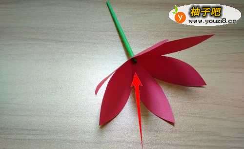 24最后,用牙签把花瓣的尾部卷一下,最后效果图如下,花的手工制作就完成了。