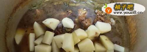 4放气开盖后加入准备好的土豆块,再放一点食盐调味,焖煮5分钟左右。