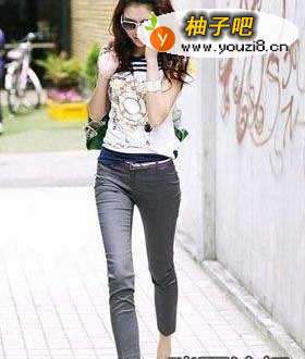 5T恤与九分裤是夏季最和谐的搭配,搭配浅色高跟鞋,不仅裸露出性感的脚踝,更提升了MM双腿的长度