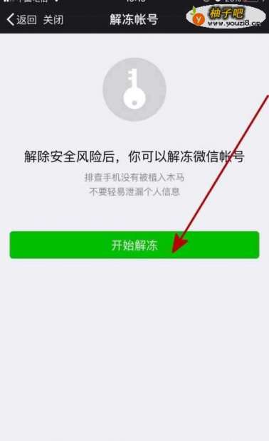 7在启用的页面中点击“开始解冻”,这样就能把不想使用的微信解冻成功了。