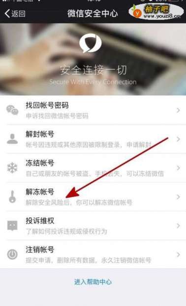5启用后我们点击“微信安全中心”进行冻结,如下图