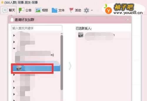 3然后在弹出的框里,选择想要拉的朋友,再点击确认即可
