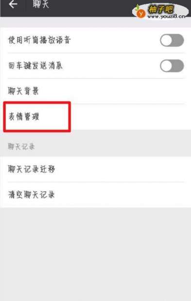 3接着进入到【聊天】的页面之后,点击【表情管理】,如图