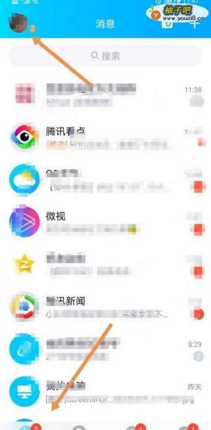 启用手机,登录QQ,先点击左下角消息,再点击左上角我的头像。