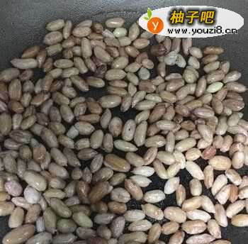 2锅中放少许油,放入花生米,小火炒。能清洗一下,淋干水分,花生米炒出来会更香脆。炒好出锅备用,凉凉。