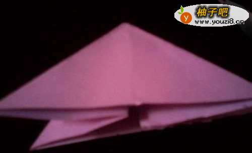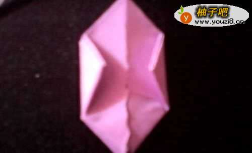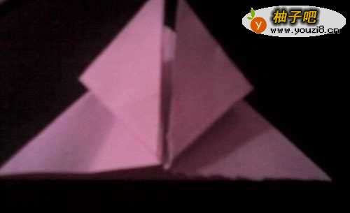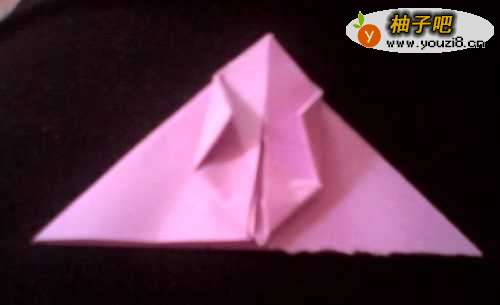 6翻过来,根据以上步骤也折成俩小角在中心对折。